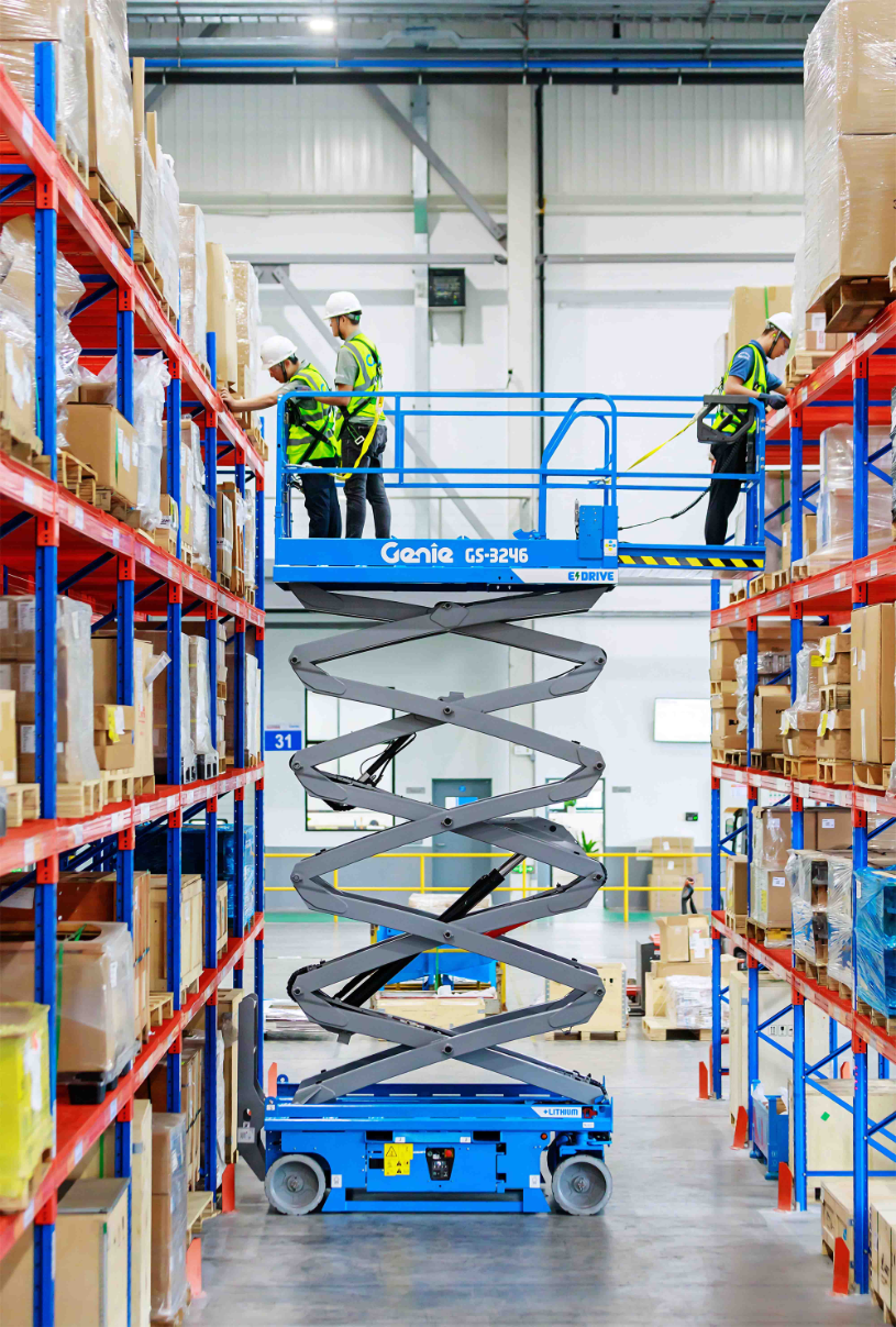 Almacenamiento e industria ligera: acceso a estanterías, inspección e instalación en techos altos.